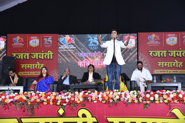 Sardar Patel University hosted a vibrant and unforgettable evening of laughter, creativity, and poetic brilliance through the Hasya Kavi Sammelan, held on 17 November at 7:00 PM. The event brought together some of the most celebrated humorous poets of the country, creating a lively atmosphere filled with wit, satire, and light-hearted entertainment.