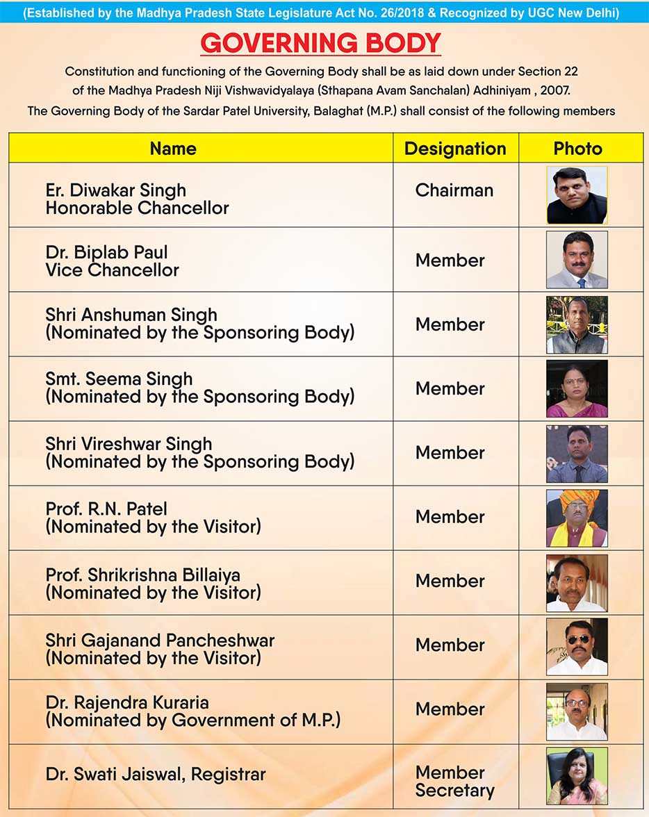 Disclaimer: Sardar Patel University is an independent institution with no affiliation to any other university of a similar name in India. It operates as a unitary campus and does not grant affiliations. The university fully complies with its governing Act and statutes, adhering to all regulatory guidelines. Additionally, Sardar Patel University does not offer any online courses.
